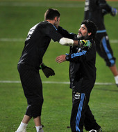 2010.06.10 02: 05선수들과 포옹을 하는 마라도나 감독