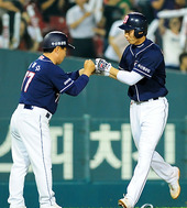 2010.06.15 22: 57김동주-임재철,'승리의 하이파이브!'