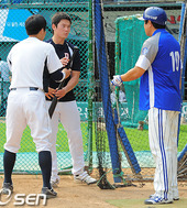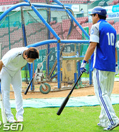 2010.06.22 16: 54김현수, '준혁선배, 방망이 좀 볼게요'