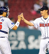 2010.07.21 21: 44양의지-이용찬, '승리의 하이파이브'