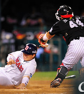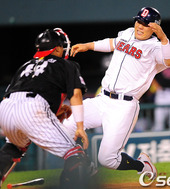 2010.07.21 20: 54'홈 슬라이딩' 김현수, '세이프 맞죠?'