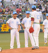 2010.07.24 19: 55김시진-이만수,'시구 감회가 새롭네요'