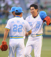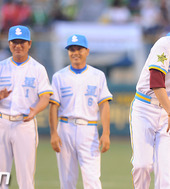 2010.07.24 19: 47시구 후 동료들의 박수를 받는 김시진 감독