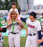 2010.07.24 18: 25김경문,'진갑용 아들 손을 잡고!'