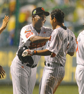 2010.07.24 22: 34손승락의 축하를 받는 황재균