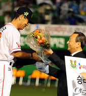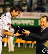 2010.07.24 21: 48유영구 총재, '홍성흔 MVP 축하하네'