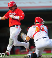 2010.08.01 19: 36이용규,'태그를 살짝 피해서 홈인!'