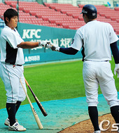 2010.08.03 16: 57최준석,'현수야! 네 배트 좀 줘봐'