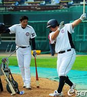 2010.08.03 17: 09최준석,'승환이형! 타격 폼 괜찮죠?'