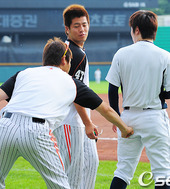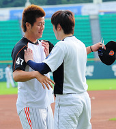 2010.08.05 16: 58홍성흔,'친정팀 김경문 감독에게 안부인사'