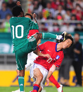 머리를 걷어차이는 박주영