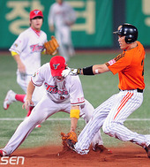2010.08.13 20: 55조성환,'2루 도루 성공이야'