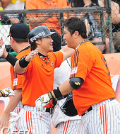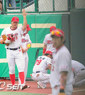 2010.08.14 17: 52조성환,'대호 세계신기록 달성 축하해'