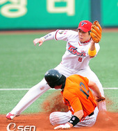 2010.08.15 17: 47안치홍,'협살 태그아웃이네