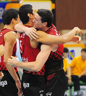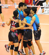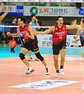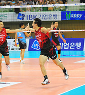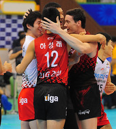 2010.08.28 16: 34승리의 기쁨을 나누는 LIG 손해보험