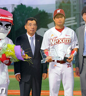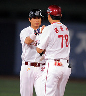 2010.09.01 20: 50이숭용-강봉규,'지만선배 3000루타 축하해요'