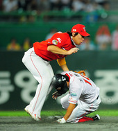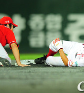 2010.09.12 19: 39조동화,'무릎에 머리가 찍혔어!'