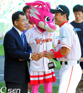 2010.09.12 17: 10김재현,'200홈런 기념트로피를 받으며'