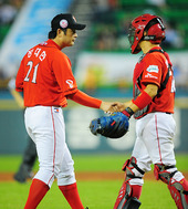 2010.09.17 22: 35정대현-박경완,'간신히 이겼어!'