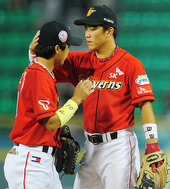 2010.09.17 22: 45조동화-정근우,'포옹이라도 할 기세'