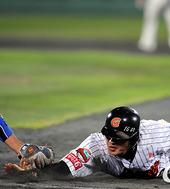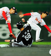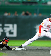 2010.09.24 19: 40견제 아웃되는 김주찬, '어이쿠 늦었네'