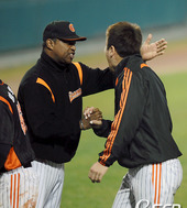 2010.09.29 22: 19승리 확정되자 미소 짓는 로이스터