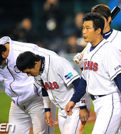 2010.09.29 22: 11전준우, '맞아도 기분은 최고!'