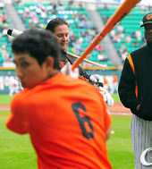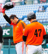2010.09.29 16: 40땀 닦는 이대호, '연습에 또 연습'