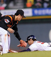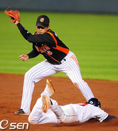 2010.09.30 19: 37오재원, '손이 더 빨랐어'