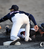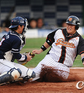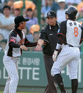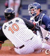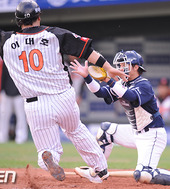 2010.10.03 16: 05이대호-용덕한,'아슬아슬한 홈접전'