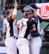 2010.10.03 16: 20홍성흔-전준우,'우리가 해냈어'