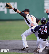2010.10.03 17: 11오재원,'태그 더 빨랐어'