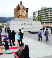 2010.10.08 16: 33세종대왕 동상 아래 '한글 의자'