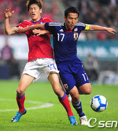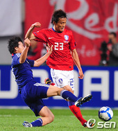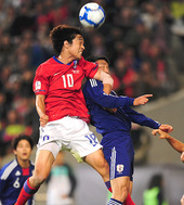 2010.10.12 20: 53윤빛가람-엔도, '치열한 공중볼 다툼'