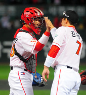 2010.10.15 22: 28김재현-박경완,'내일도 승리하자고!'