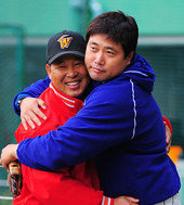 2010.10.15 15: 33양준혁,'이만수 코치와 뜨거운 포옹'