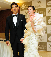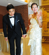2010.10.16 16: 44'웨딩마치' 에바, '연하의 신랑 손 붙잡고'