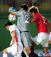 2010.11.08 19: 34북한 주광민 골키퍼의 눈빛