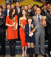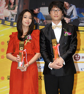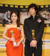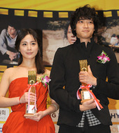 2010.11.08 19: 42서영희-강동원,'남-여우 연기상 트로피 들며'