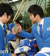 2010.11.10 14: 40류현진-김요한,'광저우에 입성했어요!'