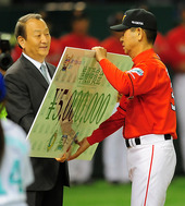 2010.11.13 17: 00팬들에게 인사하는 지바 롯데 니시무라 감독