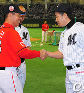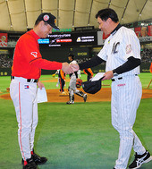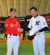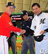 2010.11.13 13: 17김성근-니시무라,'SK대 지바 롯데! 멋진경기 해봅시다!'