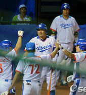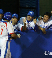 2010.11.13 19: 39[AG사진]홈런을 치고 동료들의 환영을 받는 추신수