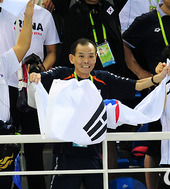 2010.11.16 20: 05[AG사진]'2관왕' 박태환과 태극기