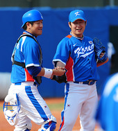 2010.11.16 14: 59[AG사진]강민호-송은범, '5회 콜드승이야'