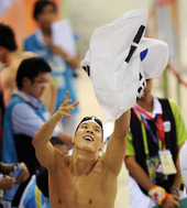 2010.11.17 21: 05[AG사진]박태환,'세리머니 준비해볼까'