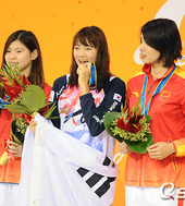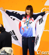 2010.11.17 20: 02[AG사진]정다래,'태극기를 활짝 펴고!'