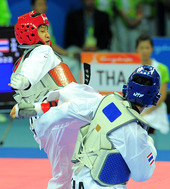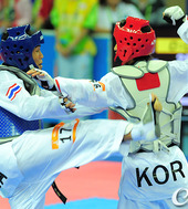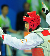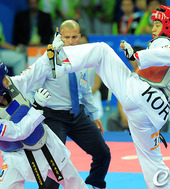 2010.11.19 18: 13[AG사진]이대훈, '금빛 발차기 무섭지?'