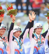 2010.11.21 18: 02[AG사진]'태극 여궁사들의 금메달 미소'