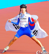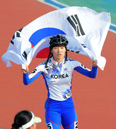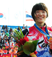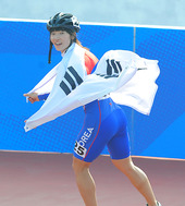 2010.11.23 12: 06[AG사진]'금빛 질주' 안이슬, '세리머니 어색하네요'